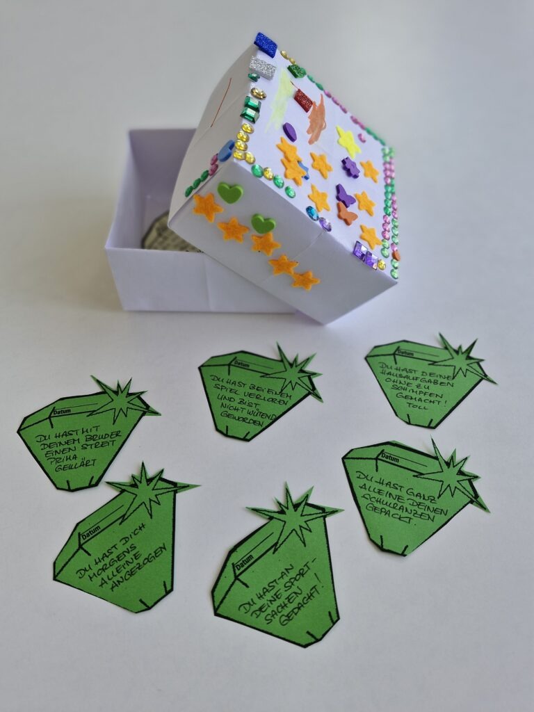 Die „Kinder lernen Verhaltensweisen, wissen was sie können und wie sie imstande sind, sich zu helfen, gemäß dem Motto ‚Ich bin, ich kann, ich mache‘“, so Heike Pfisterer. „…die Kinder werden positiv in ihrem Verhalten bestärkt“ und sie ergänzt „Die Kinder erarbeiten soziale Regeln und Handlungsmöglichkeiten“. Mit anschaulichem Material und Trainingsaufgaben für Zuhause, sorgen die ErgotherapeutInnen – in Zusammenarbeit mit den Eltern – für einen nachhaltigen Transfer in den Alltag.